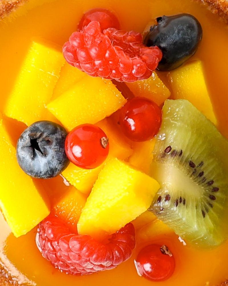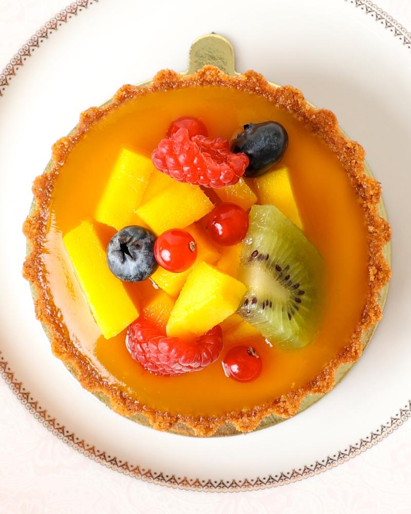 قاعدة كرَستية مقرمشة، محشوة بكاسترد الفانيلا الناعم، ومغطاة بطبقة غنية من صوص المانجو الطازج، تُزين بقطع المانجو الناضجة وتشكيلة مختارة من الفواكه المستوردة الطازجة، لتقدم نكهة استوائية فاخرة تنعش الحواس.